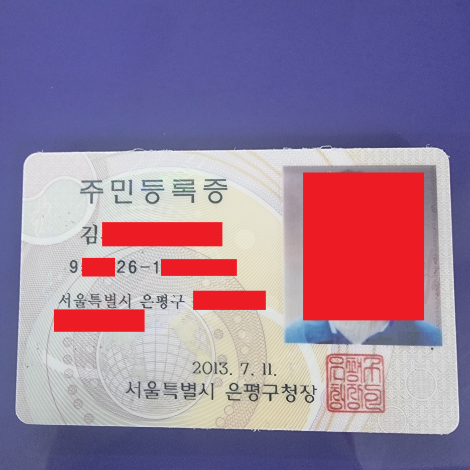 먼저 주민등록증 사진을 찍어서 준비해 줍니다.