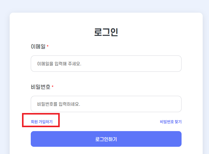 로그인 페이지에서 "회원 가입하기" 버튼을 눌러줍니다.