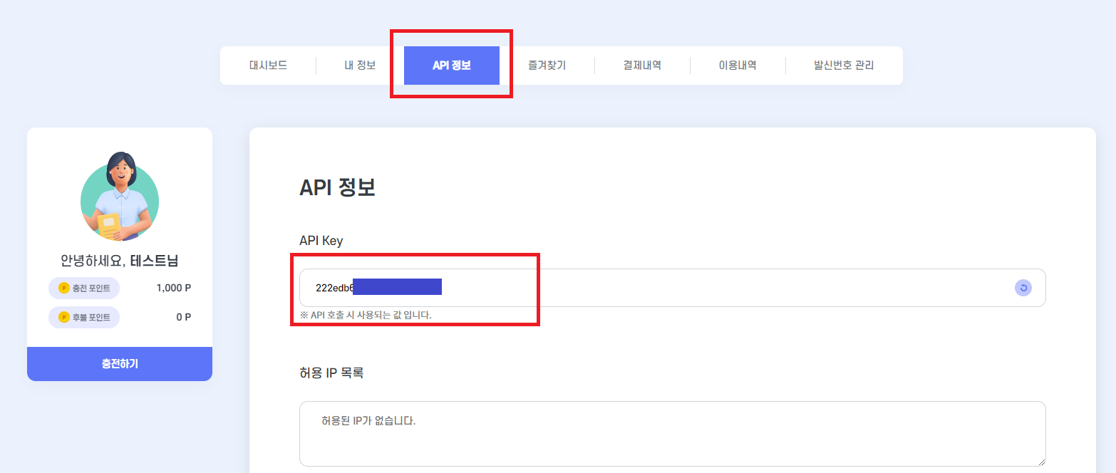 또한 보안성 강화를 위해 API를 호출할 "허용 IP 목록"을 미리 등록해 놓는것도 좋은 방법입니다.